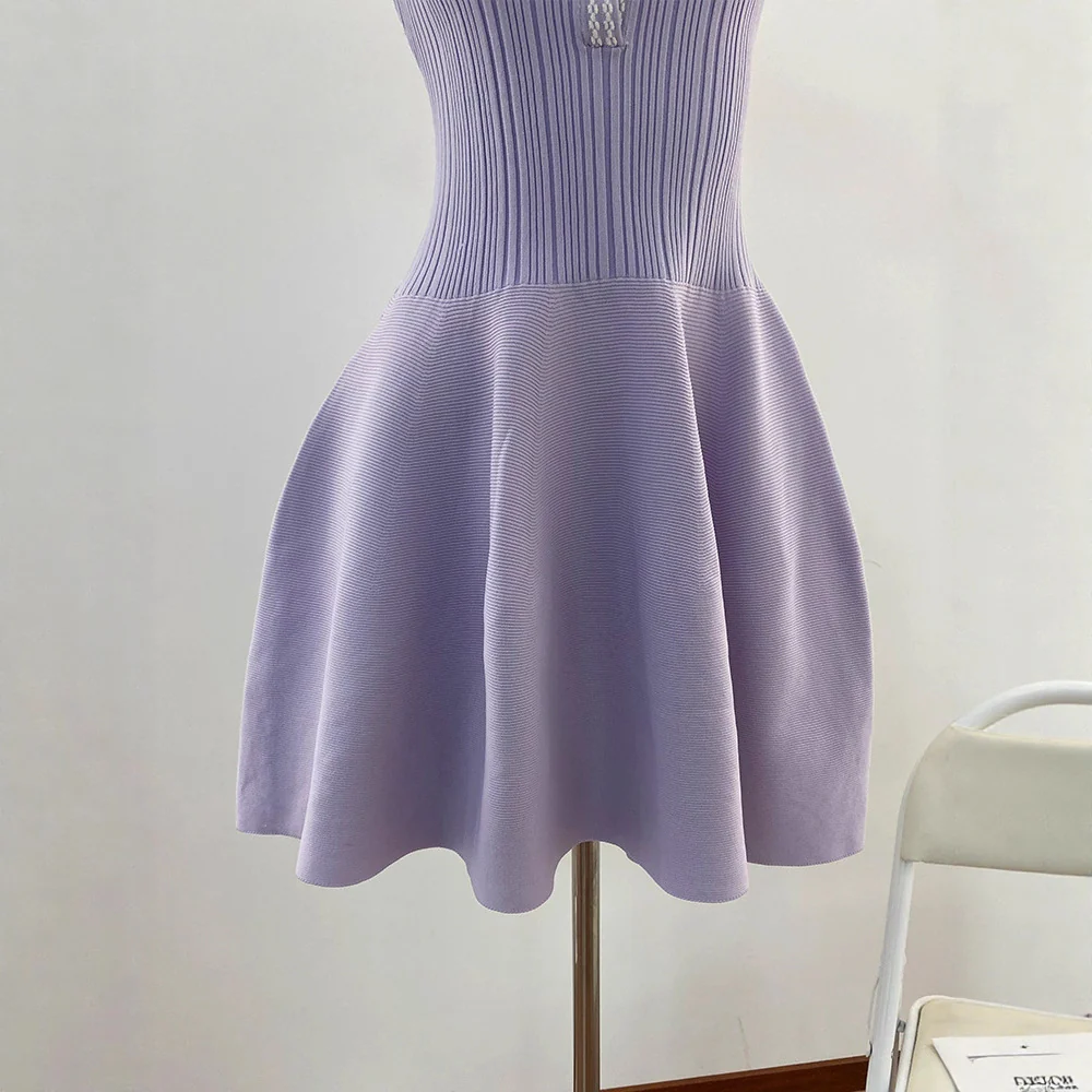 Elegant PurpleShort Sleeve Knit Dress A-Line Flared Skirt